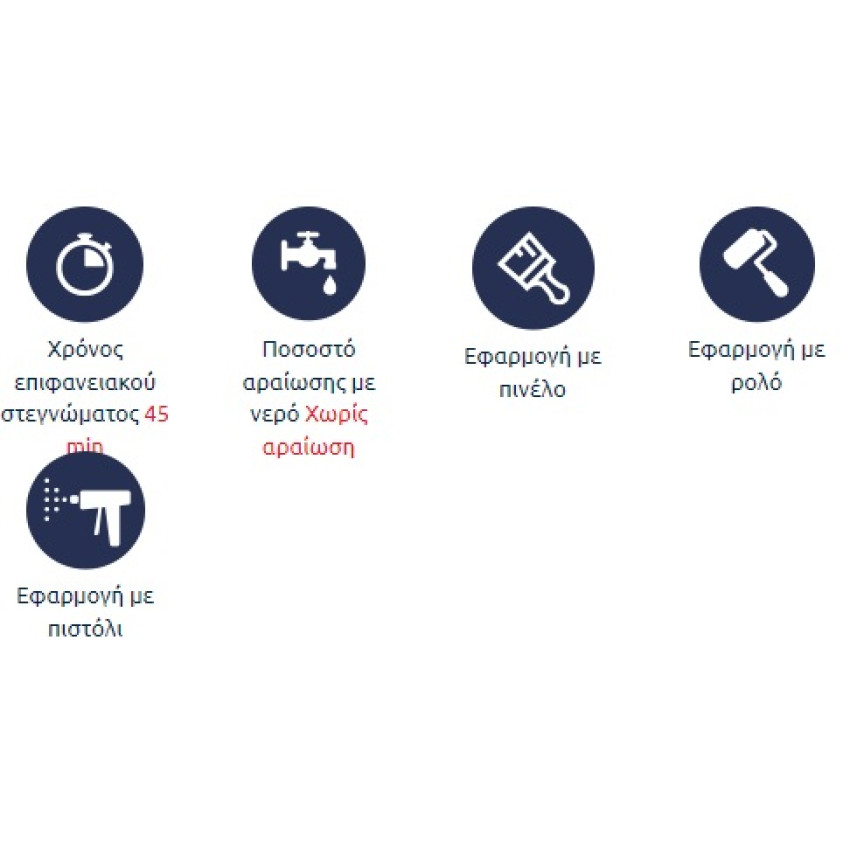 Το προϊόν είναι στεγνό στην αφή σε 45 λεπτά και επαναβάφεται μετά από 2-3 ώρες με το στεγανωτικό οροφών HyRoof Hybrid PU.