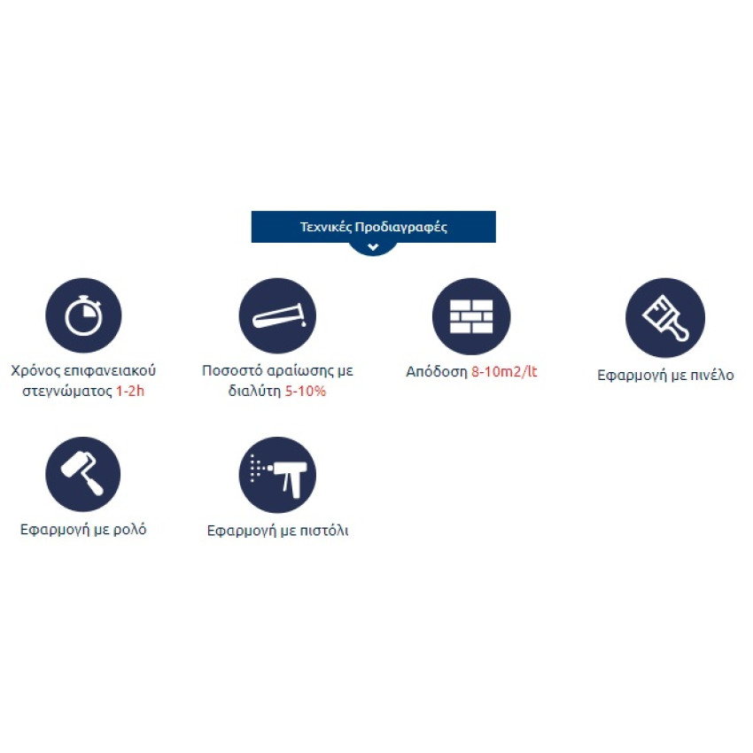 Το προϊόν είναι στεγνό στην αφή σε 1-2 ώρες και επαναβάφεται μετά από 12 ώρες.