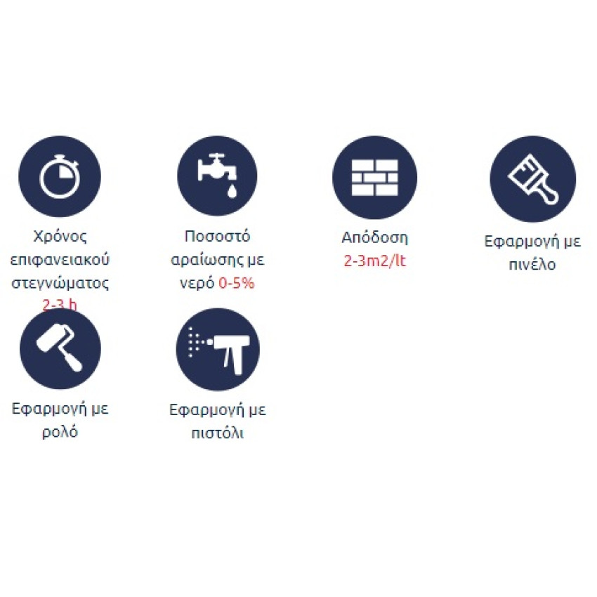 Το προϊόν είναι στεγνό στην αφή σε 2-3 ώρες και επαναβάφεται μετά από 24-48 ώρες.
