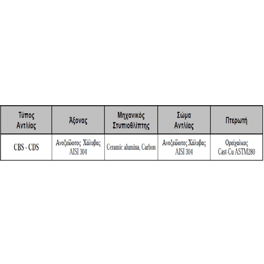 Μέγιστη Διάμετρος εισερχομένων στερεών αιωρούμενων σωματιδίων του αντλούμενου υγρού :3 mm.