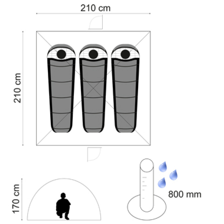 Σκηνή με φουσκωτό σκελετό.2 Ατόμων.Εξωτερικές Διαστάσεις: Μ350 x Π190 x Υ120cm.Εσωτερικές Διαστάσεις: Μ200 x Π160 x Y120cm.Διπλό πανί.Εξωτερικό Υλικό:..